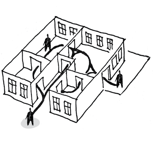 __Problem-statement: Too often, circulation within a building is conceived as an elementary branching hierarchy or “tree” structure. This is a deadening kind of space. The richest spatial experiences come from inter-connected circulatory network structures, offering rich overlapping relationships.__
