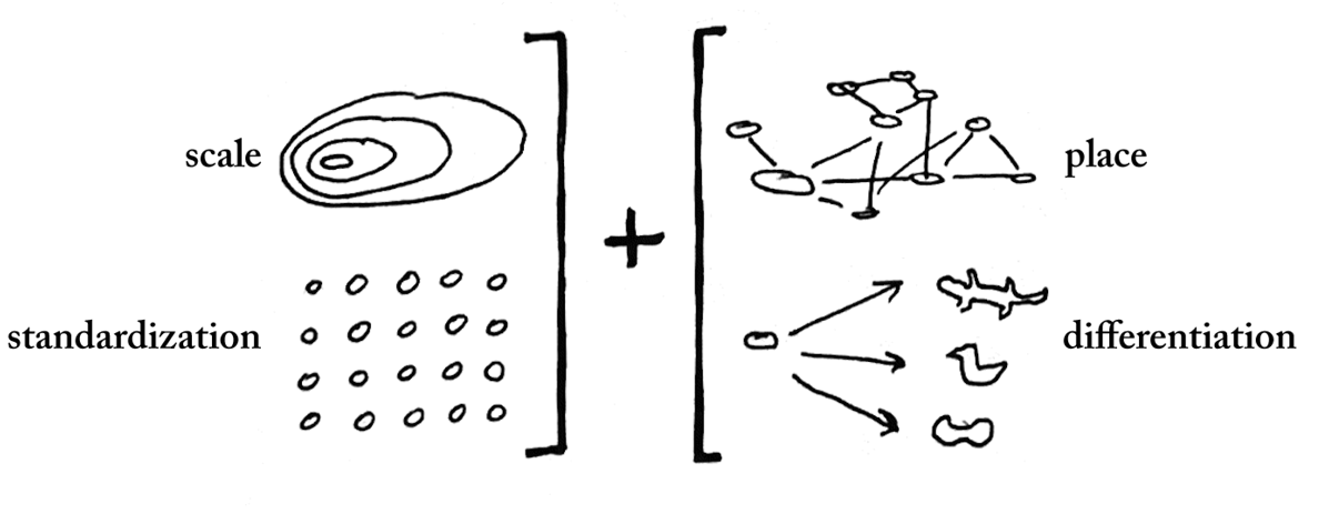 __Problem-statement: Our contemporary development system is very good at producing economies of scale and standardization. But it is deficient at producing economies of place and differentiation. In a healthy system, all four are needed in balance.__