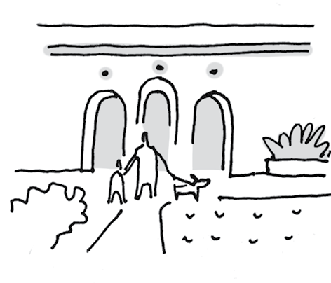 __Therefore: Use symmetry to create beauty at local and human scales, but use it sparingly at larger scales. Break the symmetry as needed to respond to changes in terrain or other environmental conditions. Do not use symmetry slavishly, but as an asset to be applied within a looser, more complex geometric system.__