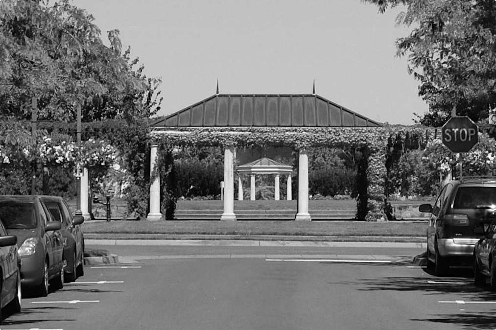 Pavilions in a neighborhood park in Hillsboro, Oregon, that hosts weddings, acoustic music events and other neighborhood-scale activities.