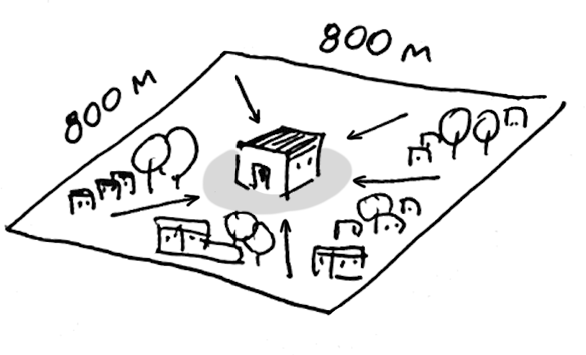 __Therefore: Create a series of neighborhood planning centers, one for each walkable neighborhood area (roughly 800 x 800 meters or ½ mile x ½ mile).__