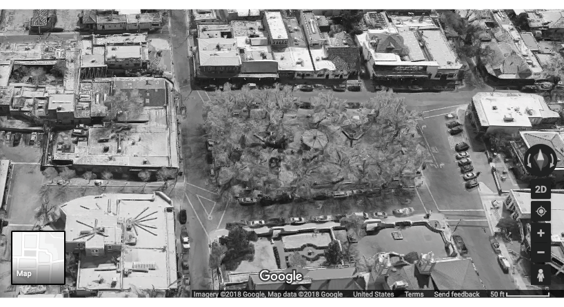 Old Town Plaza in Albuquerque, New Mexico, a classic neighborhood square following the “Laws of the Indies” regulations that required squares to be placed at the center of commercial and civic activity.¹