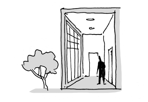In practical terms, this means that the common pattern of a dark central hallway feeding a chain of rooms on each side — known as a “double-loaded corridor” — is a terrible pattern, cutting us off from experience of the outside world, and the rest of the building. A better pattern is to wrap passageways along the exterior walls for at least part of their length, and to cluster rooms in a more complex configuration.