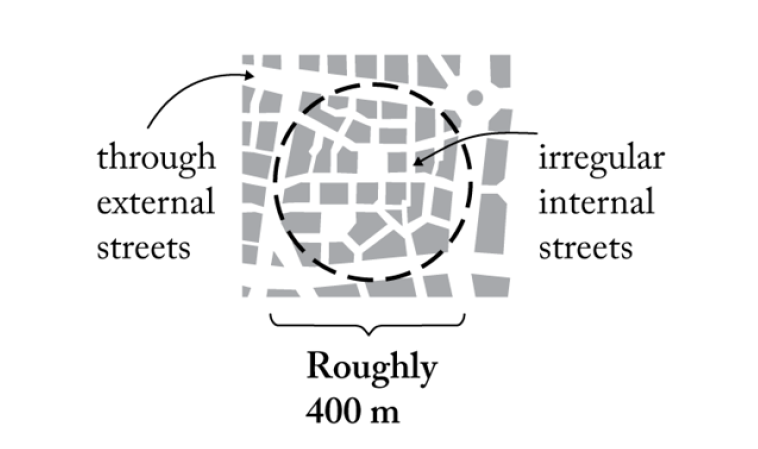 The streets within a sanctuary can be quite irregular and “picturesque,” which helps to make walking more interesting and more pleasant than driving.