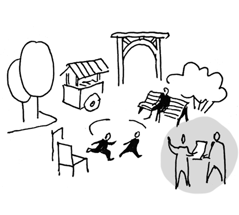 __Therefore: Structure agreements carefully between public and private entities to provide for the development and management of urban spaces, especially public spaces. Provide ongoing public reviews and social surveys, to assure that groups are not being unduly excluded from the public realm. Do not let private entities usurp the proper access to and enjoyment of public spaces — but at the same time, use the distributed capabilities of private entities to improve urban space.__