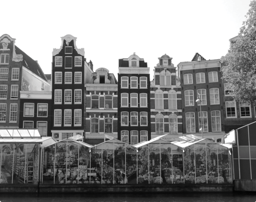 The beautiful row buildings of Amsterdam, often with radically different heights and volumes. Photo: Filip Maljković via Wikimedia Commons.