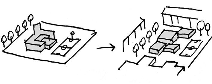 __Problem-statement: School campuses too often turn their backs on the surrounding city or suburb, and create dead zones in the urban fabric as well as isolated, boring places for students.__